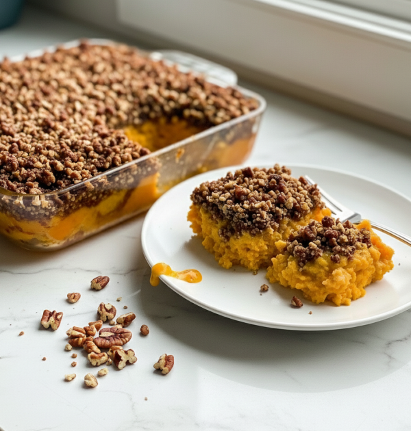 Butternut Squash Casserole with a Sweet and Smoky Pecan Topping