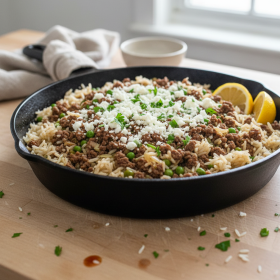 One-Pan Mediterranean Ground Beef and Rice Skillet