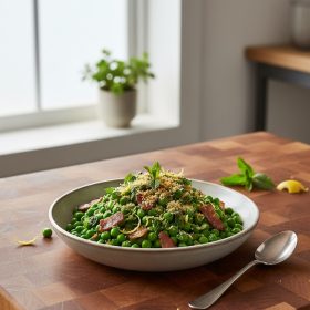 Sweet Peas with Pancetta and Zesty Lemon-Mint Gremolata