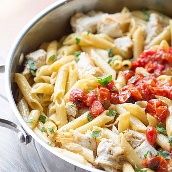 - One Pan Chicken Bacon Honey Mustard Pasta – A dish that hits all the right notes, sweet, savory, and creamy. Everything, including the pasta, cooks together in one pan for a super easy and satisfying meal.