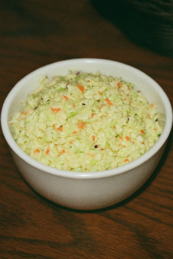 What makes it so special is the combination of a sweet, tangy dressing and the very finely chopped texture of the cabbage and carrots. It is more minced than shredded, which allows every single bite to be coated in that delicious dressing. It creates a creamy, almost melt-in-your-mouth experience that pairs perfectly with crispy fried chicken.
