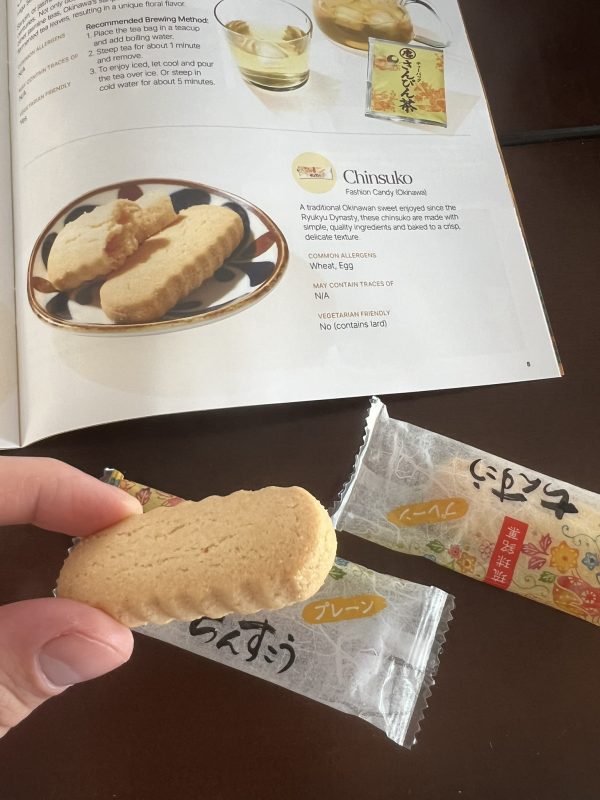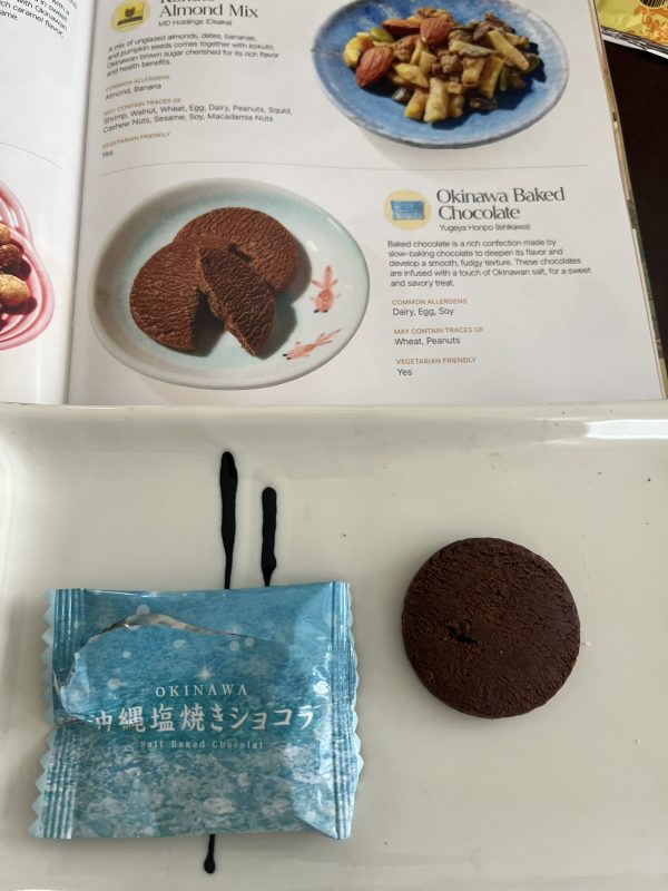 I brewed a cup of green tea, cleared a little space on my kitchen table, and started exploring. Each treat was individually wrapped, labeled, and described in a glossy guidebook that read like a travel diary. As I unwrapped each one — a flaky purple sweet potato pie, a bite of rich Okinawan baked chocolate, a crunchy mix kissed with brown sugar — it became more than just a snack tasting.