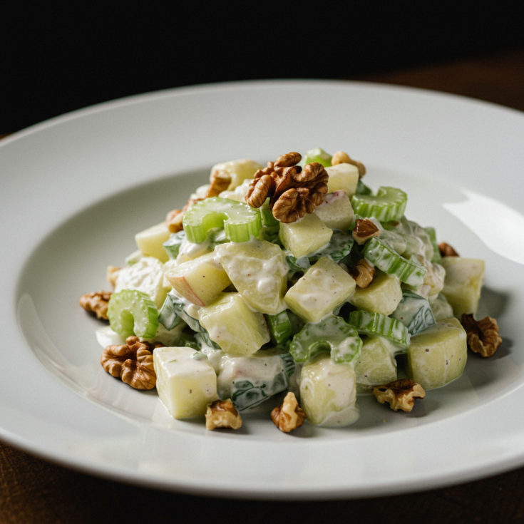 I remember my first real encounter with a Waldorf Salad. It was at a church potluck, sitting in a big glass bowl between a wobbly congealed salad and a pan of mac and cheese. It was… fine. You know, apples, celery, and a whole lot of plain mayonnaise. It was the kind of dish you took a polite spoonful of and then moved on.