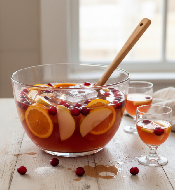 - Festive Ice: Instead of a plain ice block, make a decorative ice ring. You can do this by freezing water (or even some of the punch itself) in a bundt pan with cranberries and orange slices suspended inside. It looks stunning and melts slowly.