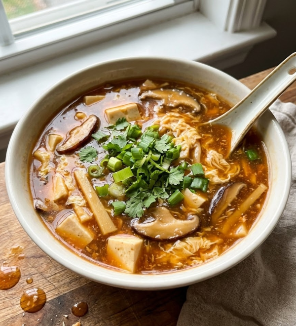Serving hot sour soup is all about presenting it in a way that highlights its comforting and flavorful nature. I believe the experience of eating a dish starts the moment you see it, so a little extra effort in presentation goes a long way. At its simplest, this soup is a complete meal in a bowl, perfect for a cozy night in. I love serving it in deep, earthy ceramic bowls that hold the heat well.